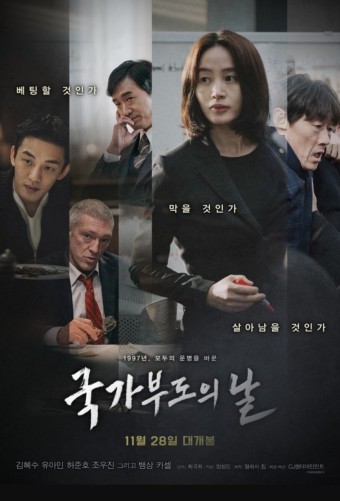 영화 [국가 부도의 날]은 우리나라 현대사에서 중요한 사건 중 하나인 1997년 IMF 외환위기를 소재로 만들어진 영화입니다. 한국 영화 최초로 IMF 외환 위기를 배경으로 만들었다고 하는데, 그 당시의 외환 위기로 발생했던 사회 문제를 잘 표현했다고 평가받은 영화입니다. 영화의 소재는 실제로 있었던 역사적 사실이지만 내용에서 등장하는 'IMF 당시 비밀 대책팀이 운영되었다'라는 설정은 기사를 보고 만든 픽션이라고 합니다. 실화를 기반으로 한 영화들처럼 인물과 사건들은 대체적으로 영화적 재미를 위해 재구성한 것으로 보입니다. 2016년 [스플릿]을 연출한 최국희 감독의 작품으로 김혜수, 유아인, 허준호, 조우진 등의 배우가 열연하였고, IMF 총재 역할로 프랑스 배우 뱅상 카셀이 출연하였습니다. 존재감이 필요한 역할이라 뱅상 카셀을 캐스팅하였다고 하는데, 개인적으로 영화 상에서는 크게 인상적이지는 않았습니다. 한국은행 통화정책팀장을 맡은 김혜수 배우의 연기가 정말 좋았습니다.